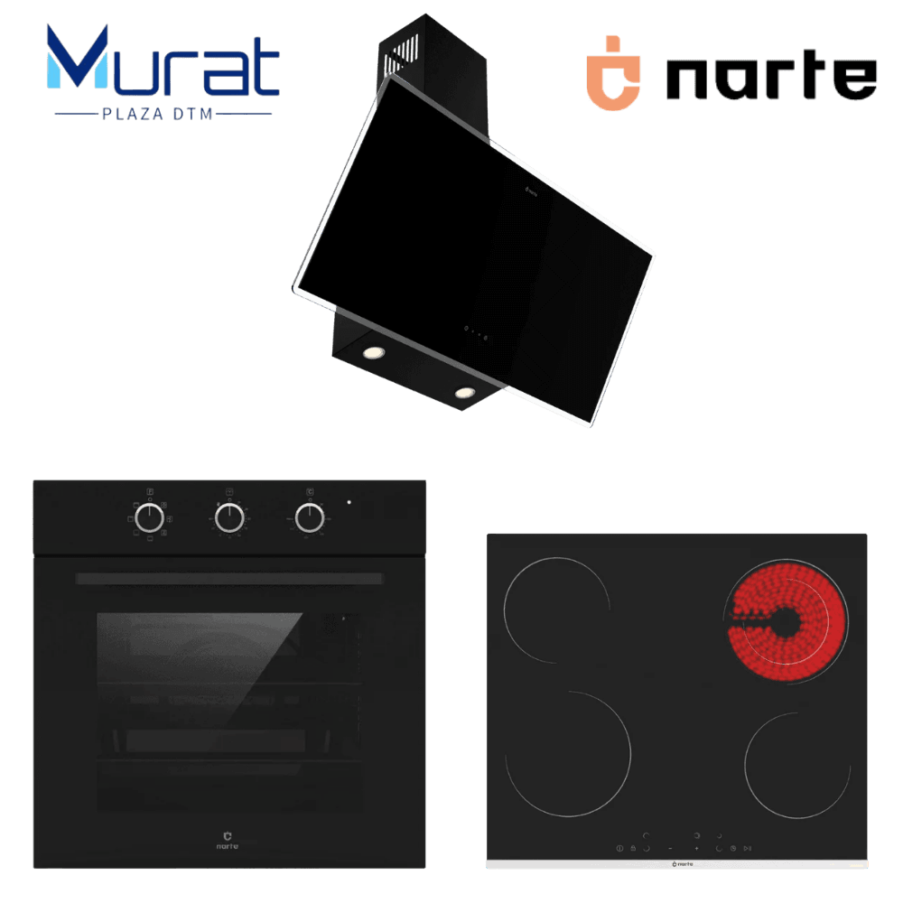 Narte Elite Black Set, mutfağını geleceğin teknolojisiyle donatmak isteyenlerin ilk tercihi. Gaz tesisatına ihtiyaç duymayan vitroseramik ocak sistemi, mutfağınıza güvenlik ve pürüzsüz bir estetik katarken; 90 cm genişliğindeki davlumbaz, ocağınızdan yükselen her zerre buharı sessizce hapseder. Siyahın en asil tonlarını teknolojiyle buluşturan bu set, Murat Plaza DTM güvencesiyle sunuluyor.